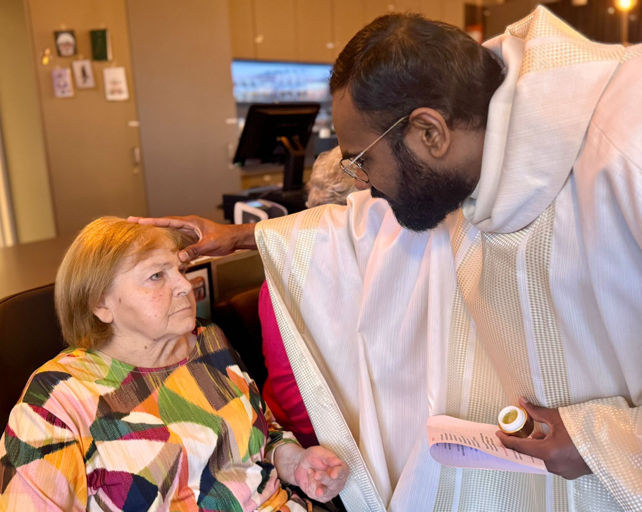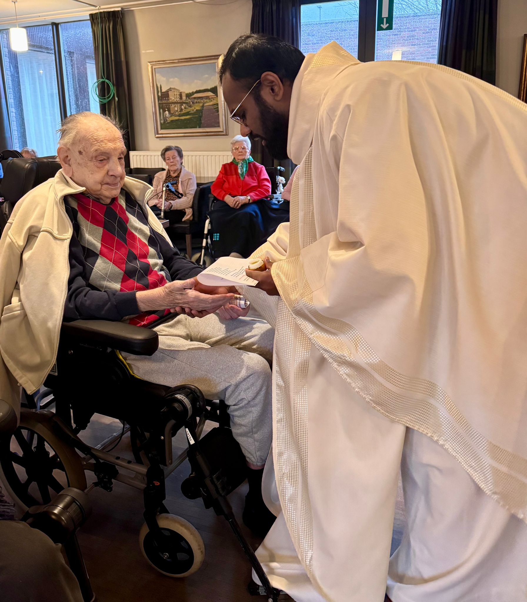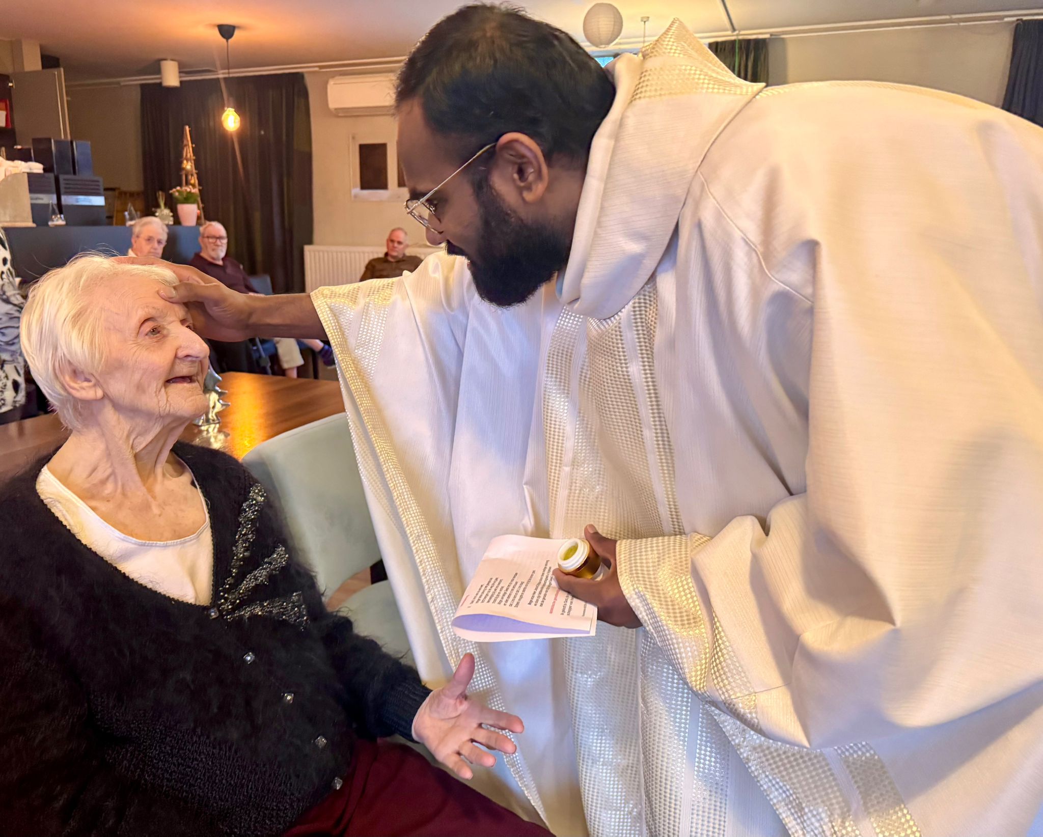Vrijdag 9 januari vierde pastoor Christhu voor de eerste keer met de bewoners van wzc De Ravestein. Het leek hem een goed idee om de ziekenzalving toe te dienen aan wie zich geroepen voelde. Samen met diaken Frans en huisvrijwilliger Maria vierde de huisgemeenschap het feest van de doop van de Heerzz, terwijl Tom af en toe wat orgelklanken toevoegde.